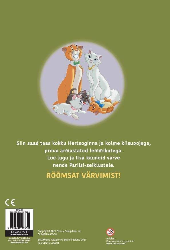 Siin saad taas kokku Hertsoginna ja kolme kiisupojaga, proua armastatud lemmikutega. Loe lugu ja lisa kauneid värve nende Pariisi-seiklustele. Rõõmsat värvimist!