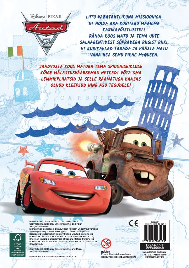 Liitu vabatahtlikuna missiooniga, et hoida ära kuritegu maailma karikavõistlustel! Rända koos Matu ja tema uute salaagentidest tabada ja päästa Matu vana hea semu Pikne MqQueen. Jäädvusta koos Matuga teha spiooniseikluse kõige mälestusväärsemad hetked! Võta oma lemmikpliiatsid ja selle raamatuga kaasas olnud kleepsud ning asu tegudele!