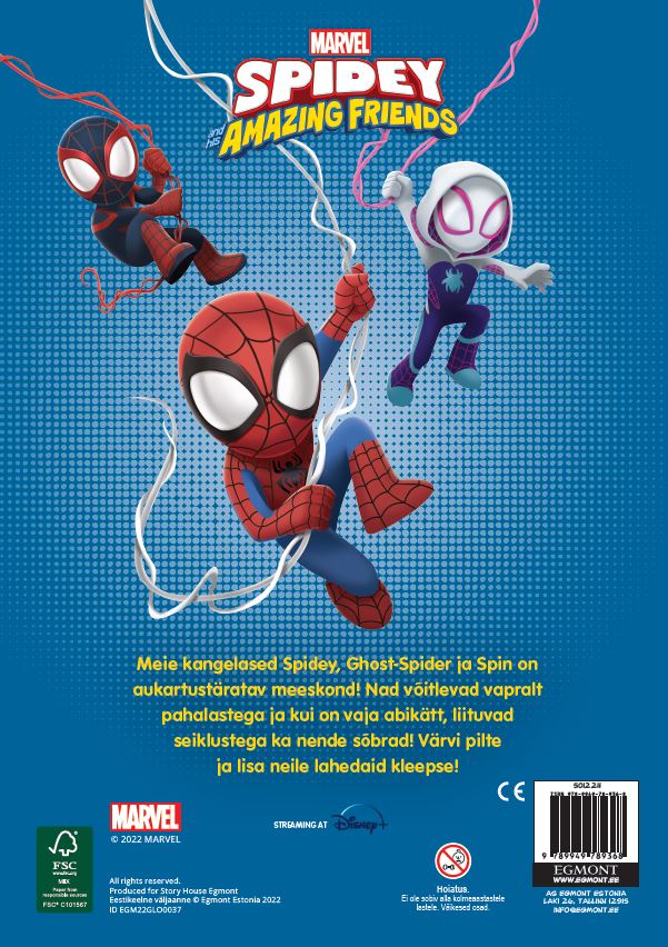 Meie kangelased Spidey, Ghost-Spider ja Spin on aukartusäratav meeskond! Nad võitlevad vapralt pahalastega ja kui on vaja abikätt, liituvad seiklustega ka nende sõbrad! Värvi pilte ja lisa neile lahedaid kleepse! NB! TEGEMIST ON VIIMASTE KOOPIATEGA, MILLE KAANED VÕIVAD OLLA PISUT KANNATADA SAANUD, SISU SELLEGIPOOLEST AEGUMATU!