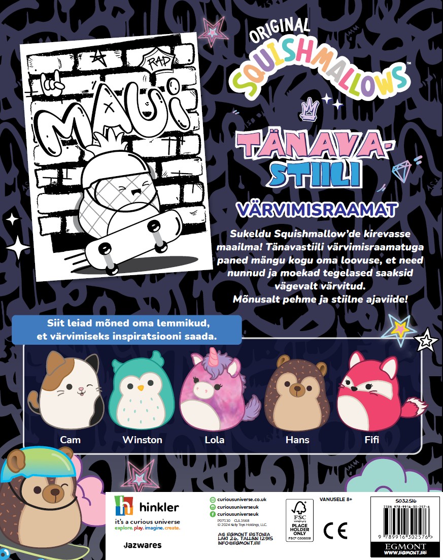 Sukeldu Squishmallow’de kirevasse maailma! Tänavastiili värvimisraamatuga paned mängu kogu oma loovuse, et need nunnud ja moekad tegelased saaksid vägevalt värvitud. Mõnusalt pehme ja stiilne ajaviide!
